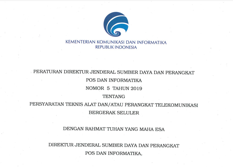 Peraturan Direktur Jenderal Sumber Daya dan Perangkat Pos dan Informatika Nomor 5 Tahun 2019